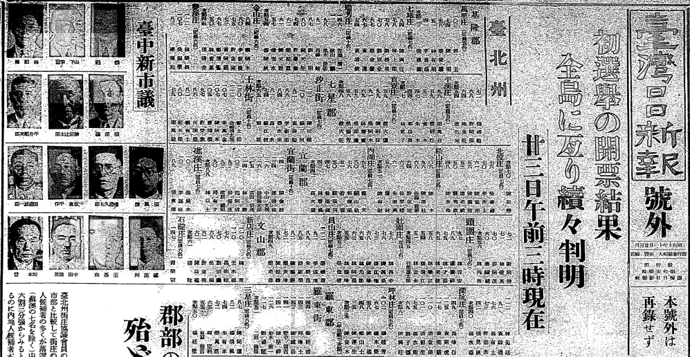圖1 1935年的台灣處女選舉備受關注,連報紙也出號外(台灣日日新報19351123)