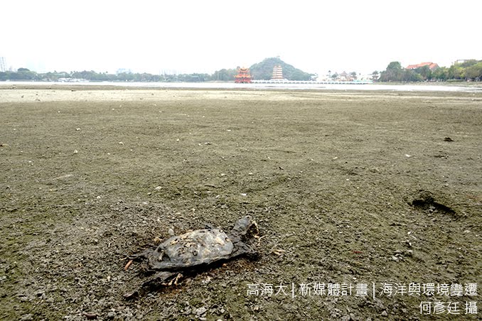 ▲ 高雄蓮池潭因久未下雨,河面完全乾枯並看得見底部土壤